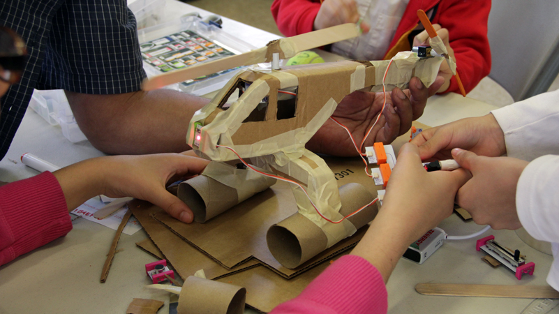 a series of free maker events across Chicago featuring electronics & cardboard ... more